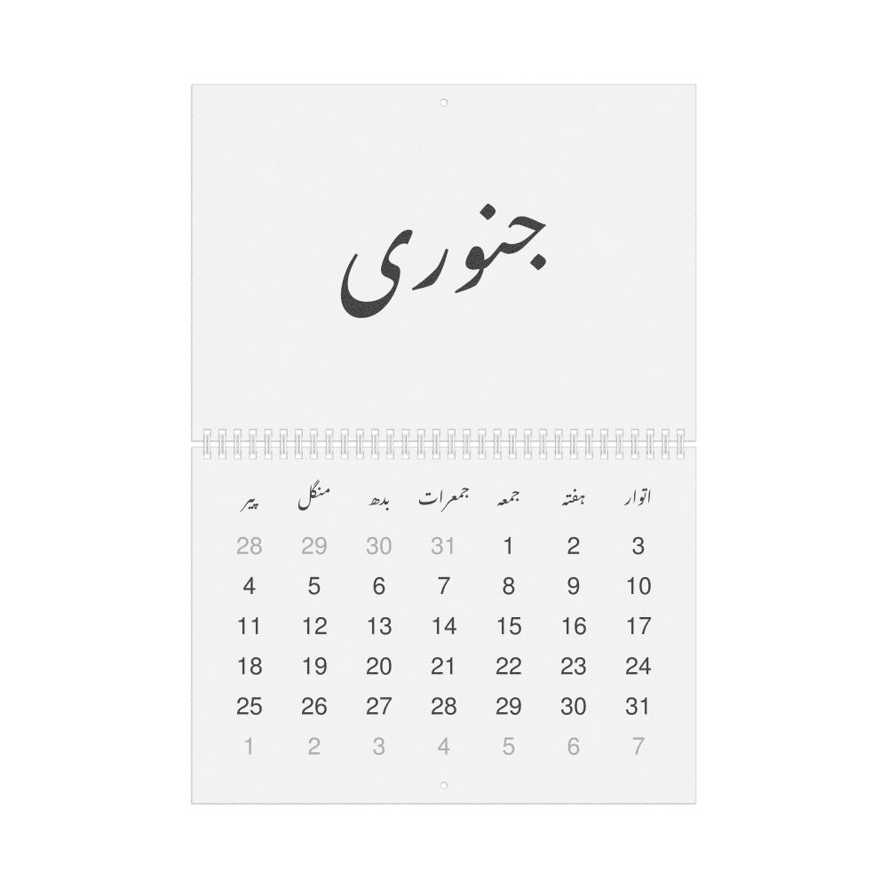 - Urdu heritage speakers and cultural connectors - For individuals seeking to maintain a connection to their history, ancestral roots, or the culture associated with the Urdu language, the calendar serves as a daily cultural marker. Use it in your home, office, library, or museum as a link to linguistic and cultural identity that integrates Urdu into your everyday life. Familiar language script and naming conventions may also provide a sense of home in a foreign environment.