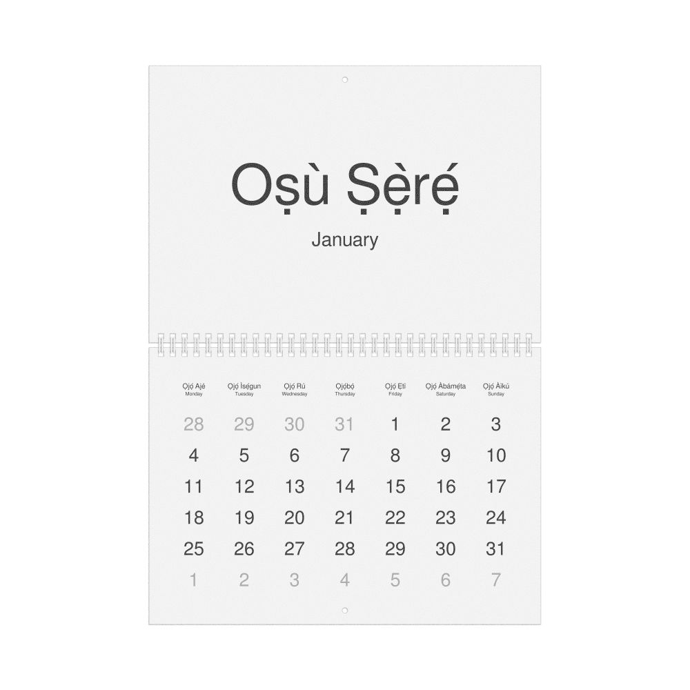 2027 Wall Calendar, Yoruba-Labeled, Monday-Start Layout, Poster / Wall Print, 23.4 x 33.1 in (59.4 x 84.1 cm)