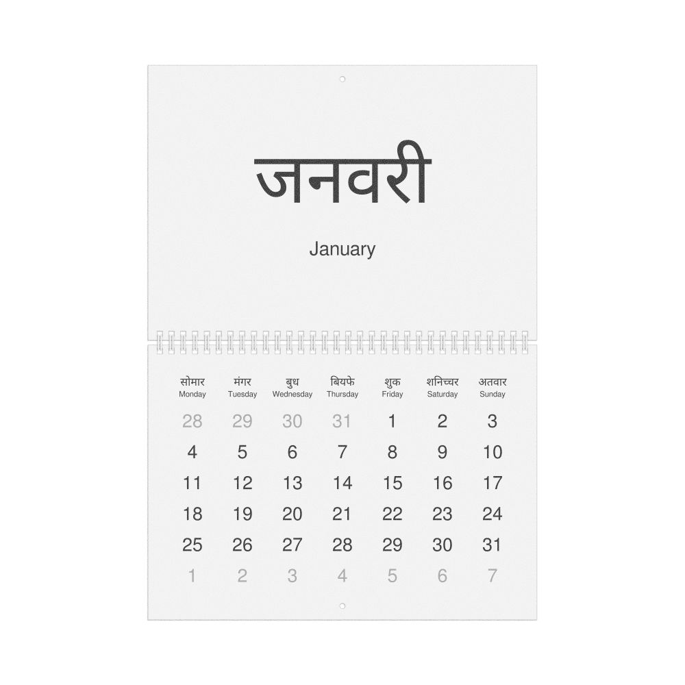 2027 Wall Calendar, Bhojpuri-Labeled, Monday-Start Layout, Wire-Bound, 11.7 x 8.3 in (29.7 x 21.0 cm)