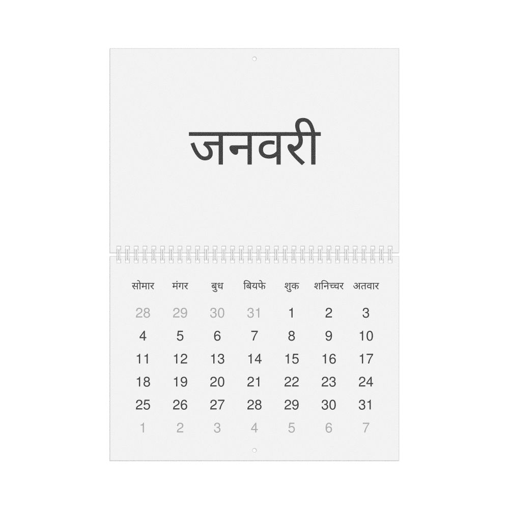 - Bhojpuri heritage speakers and cultural connectors - For individuals seeking to maintain a connection to their history, ancestral roots, or the culture associated with the Bhojpuri language, the calendar serves as a daily cultural marker. Use it in your home, office, library, or museum as a link to linguistic and cultural identity that integrates Bhojpuri into your everyday life. Familiar language script and naming conventions may also provide a sense of home in a foreign environment.