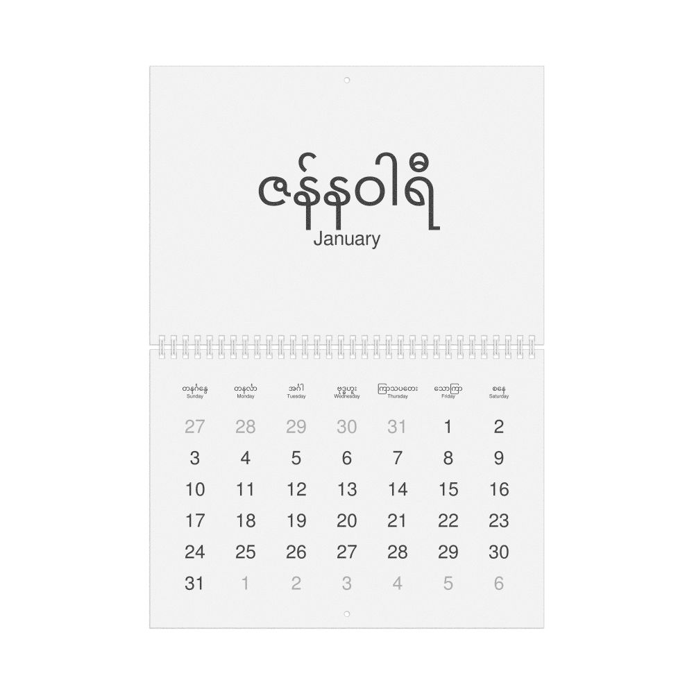 2027 Wall Calendar, Burmese/English-Labeled, Monday-Start Layout, Wire-Bound, 11.7 x 8.3 in (29.7 x 21.0 cm)