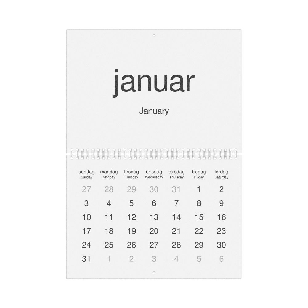 2026 Wall Calendar, Norwegian-Labeled, Monday-Start Layout, Wire-Bound, 11.7 x 8.3 in (29.7 x 21.0 cm)