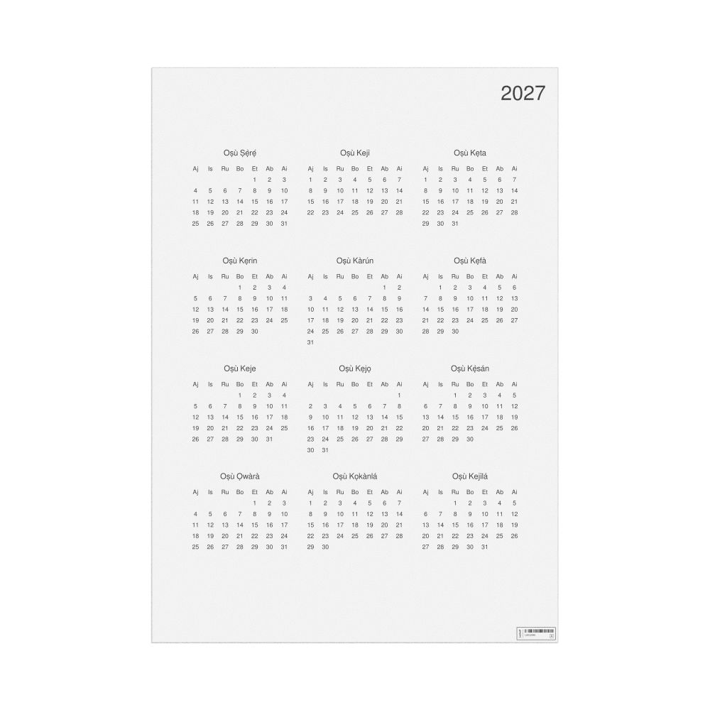 Leskoff 2027 Wall Calendar, Yoruba-Labeled, Monday-Start Layout, Poster / Wall Print, 23.4 x 33.1 in (59.4 x 84.1 cm), image 1 of 1