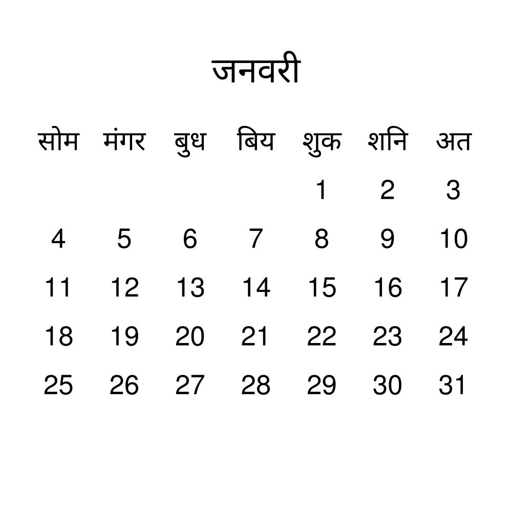 - Bhojpuri heritage speakers and cultural connectors - For individuals seeking to maintain a connection to their history, ancestral roots, or the culture associated with the Bhojpuri language, the calendar serves as a daily cultural marker. Use it in your home, office, library, or museum as a link to linguistic and cultural identity that integrates Bhojpuri into your everyday life. Familiar language script and naming conventions may also provide a sense of home in a foreign environment.