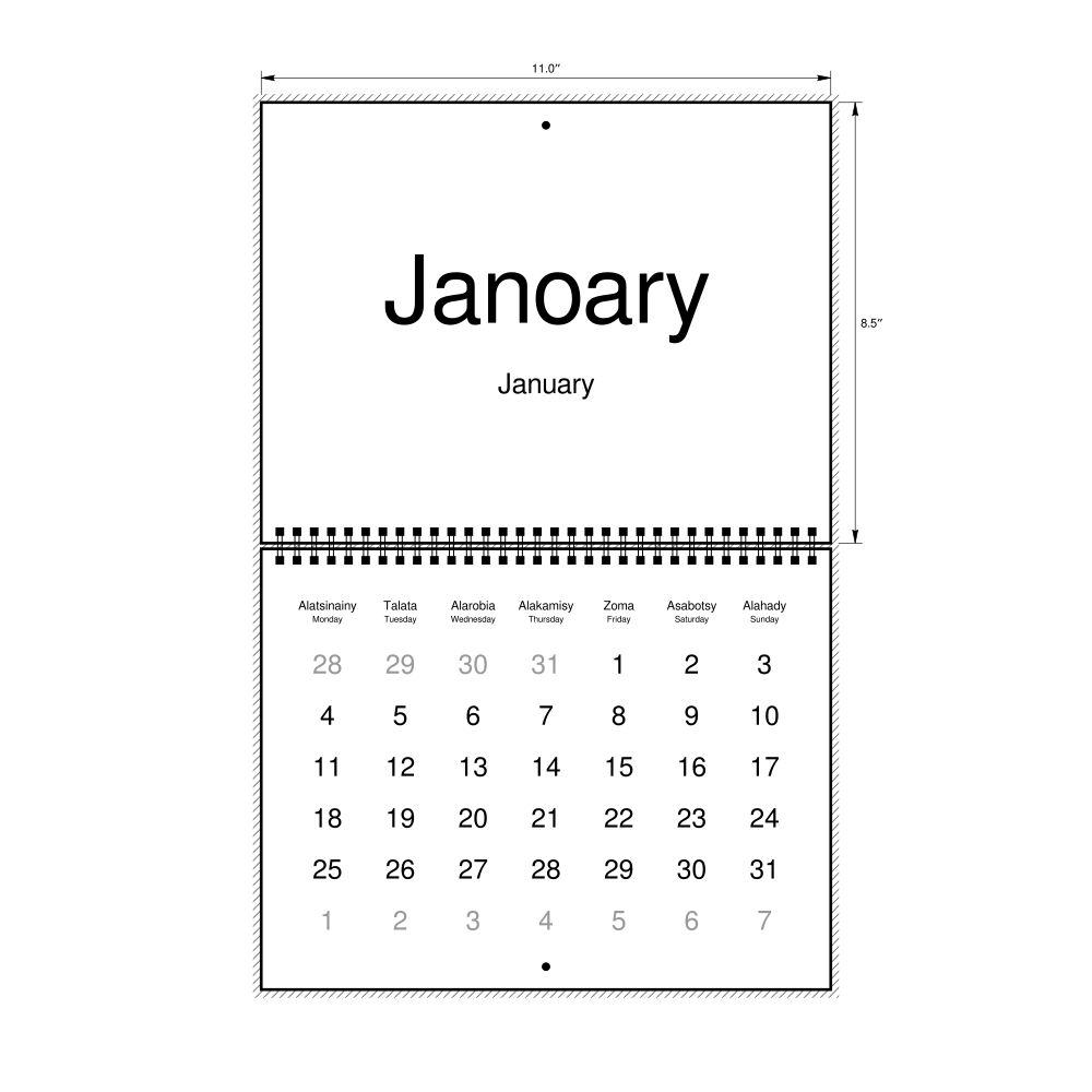 2026 Wall Calendar, Malagasy-Labeled, Monday-Start Layout, Wire-Bound, 11 x 8.5 in (27.9 x 21.6 cm)