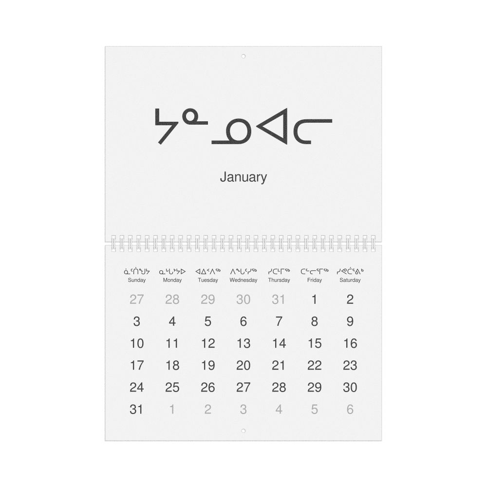 2027 Wall Calendar, Inuktitut-Labeled, Sunday-Start Layout, Poster / Wall Print, 23.4 x 33.1 in (59.4 x 84.1 cm)