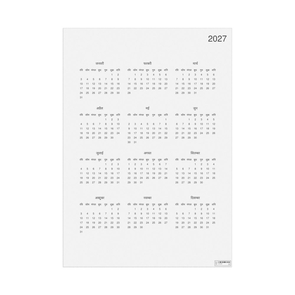 Leskoff 2027 Wall Calendar, Maithili-Labeled, Sunday-Start Layout, Poster / Wall Print, 23.4 x 33.1 in (59.4 x 84.1 cm), image 1 of 1