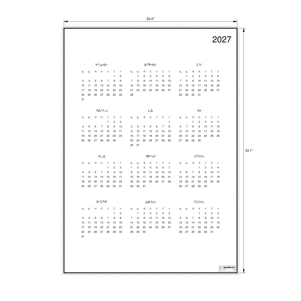 2027 Wall Calendar, Inuktitut-Labeled, Sunday-Start Layout, Poster / Wall Print, 23.4 x 33.1 in (59.4 x 84.1 cm)