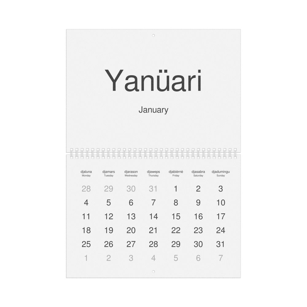 2026 Wall Calendar, Papiamento/English-Labeled, Monday-Start Layout, Wire-Bound, 11.7 x 8.3 in (29.7 x 21.0 cm)