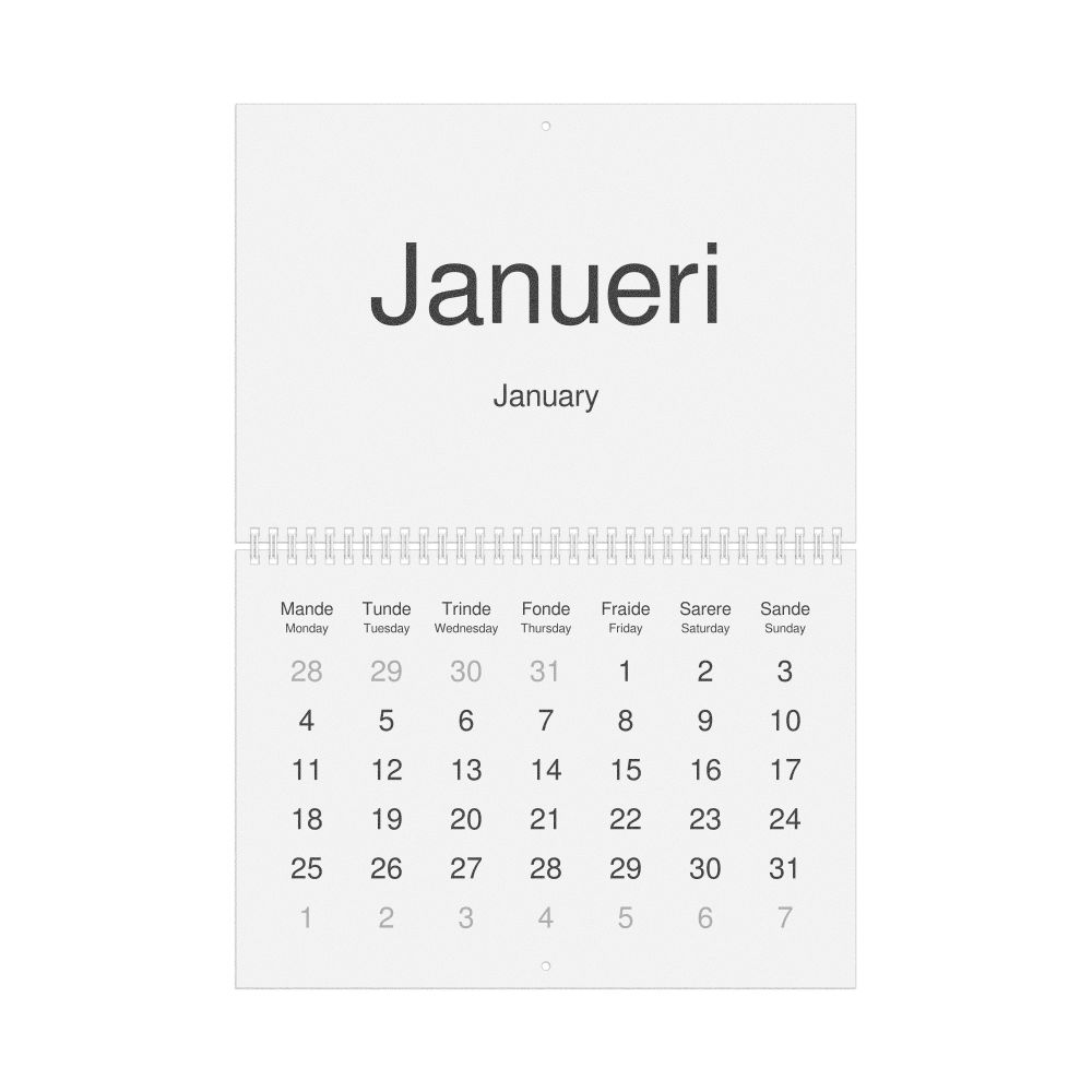 2027 Wall Calendar, Tok Pisin/English-Labeled, Sunday-Start Layout, Wire-Bound, 11.7 x 8.3 in (29.7 x 21.0 cm)