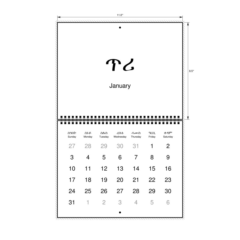 2027 Wall CalendarTigrinya/English-Labeled, Sunday-Start Layout, Wire-Bound, 11 x 8.5 in (27.9 x 21.6 cm)