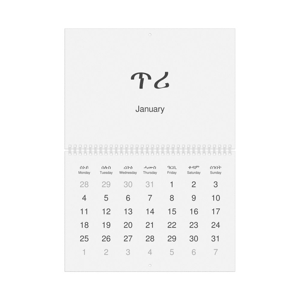 2026 Wall Calendar, Tigrinya/English-Labeled, Sunday-Start Layout, Wire-Bound, 11.7 x 8.3 in (29.7 x 21.0 cm)