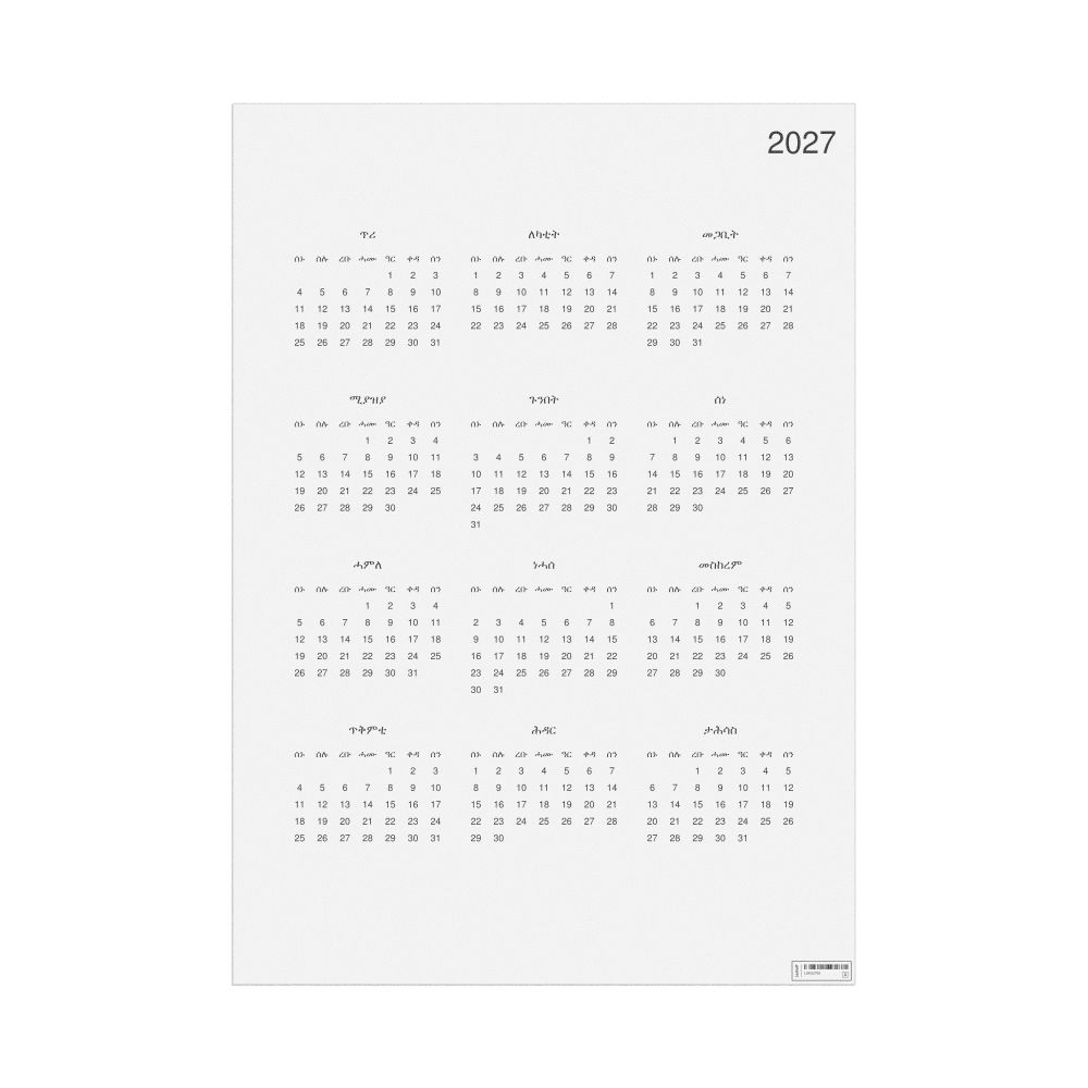 Leskoff 2027 Wall Calendar, Tigrinya-Labeled, Monday-Start Layout, Poster / Wall Print, 23.4 x 33.1 in (59.4 x 84.1 cm), image 1 of 1