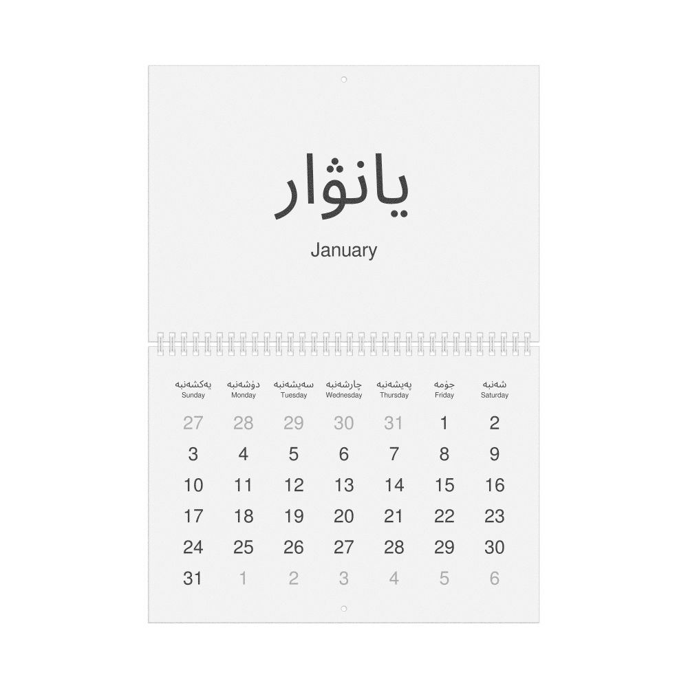 2027 Wall Calendar, Uyghur-Labeled, Sunday-Start Layout, Wire-Bound, 11.7 x 8.3 in (29.7 x 21.0 cm)