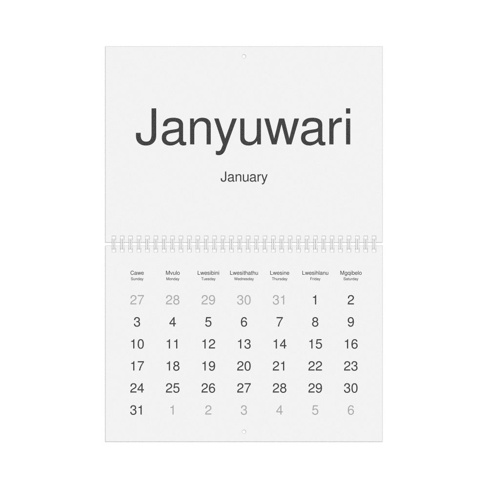 2027 Wall Calendar, Xhosa-Labeled, Sunday-Start Layout, Poster / Wall Print, 23.4 x 33.1 in (59.4 x 84.1 cm)