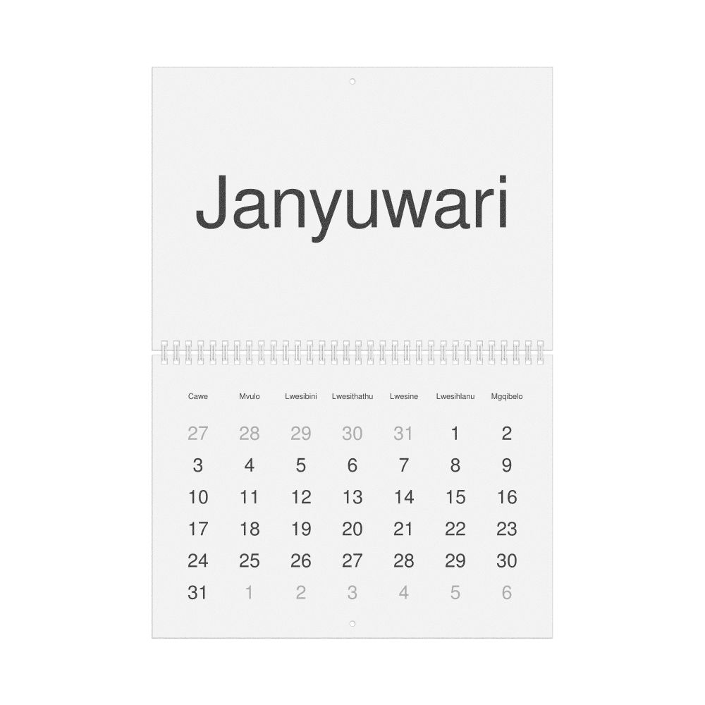 - Xhosa heritage speakers and cultural connectors - For individuals seeking to maintain a connection to their history, ancestral roots, or the culture associated with the Xhosa language, the calendar serves as a daily cultural marker. Use it in your home, office, library, or museum as a link to linguistic and cultural identity that integrates Xhosa into your everyday life. Familiar language script and naming conventions may also provide a sense of home in a foreign environment.