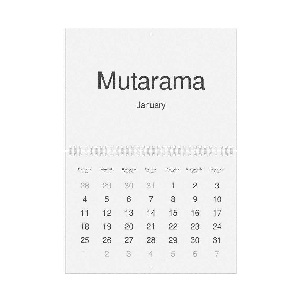 2027 Wall Calendar, Kinyarwanda-Labeled, Sunday-Start Layout, Wire-Bound, 11.7 x 8.3 in (29.7 x 21.0 cm)