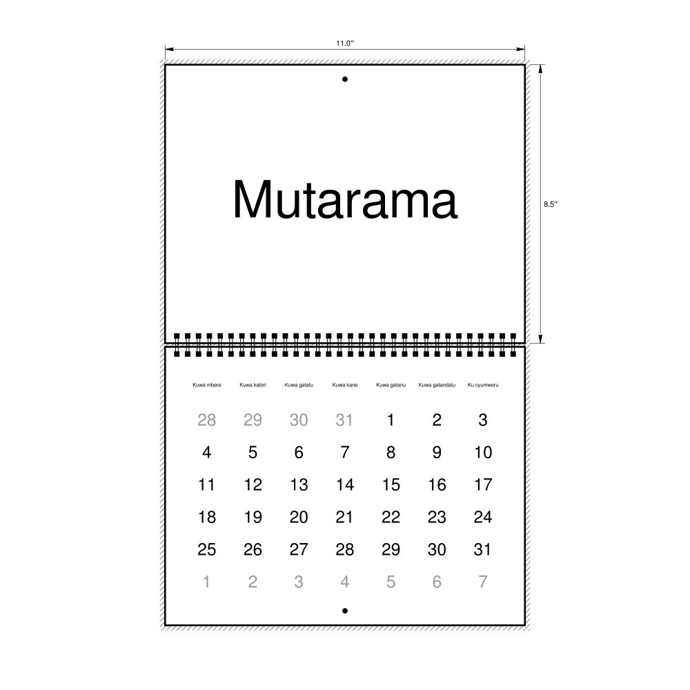 - Kinyarwanda heritage speakers and cultural connectors - For individuals seeking to maintain a connection to their history, ancestral roots, or the culture associated with the Kinyarwanda language, the calendar serves as a daily cultural marker. Use it in your home, office, library, or museum as a link to linguistic and cultural identity that integrates Kinyarwanda into your everyday life. Familiar language script and naming conventions may also provide a sense of home in a foreign environment.