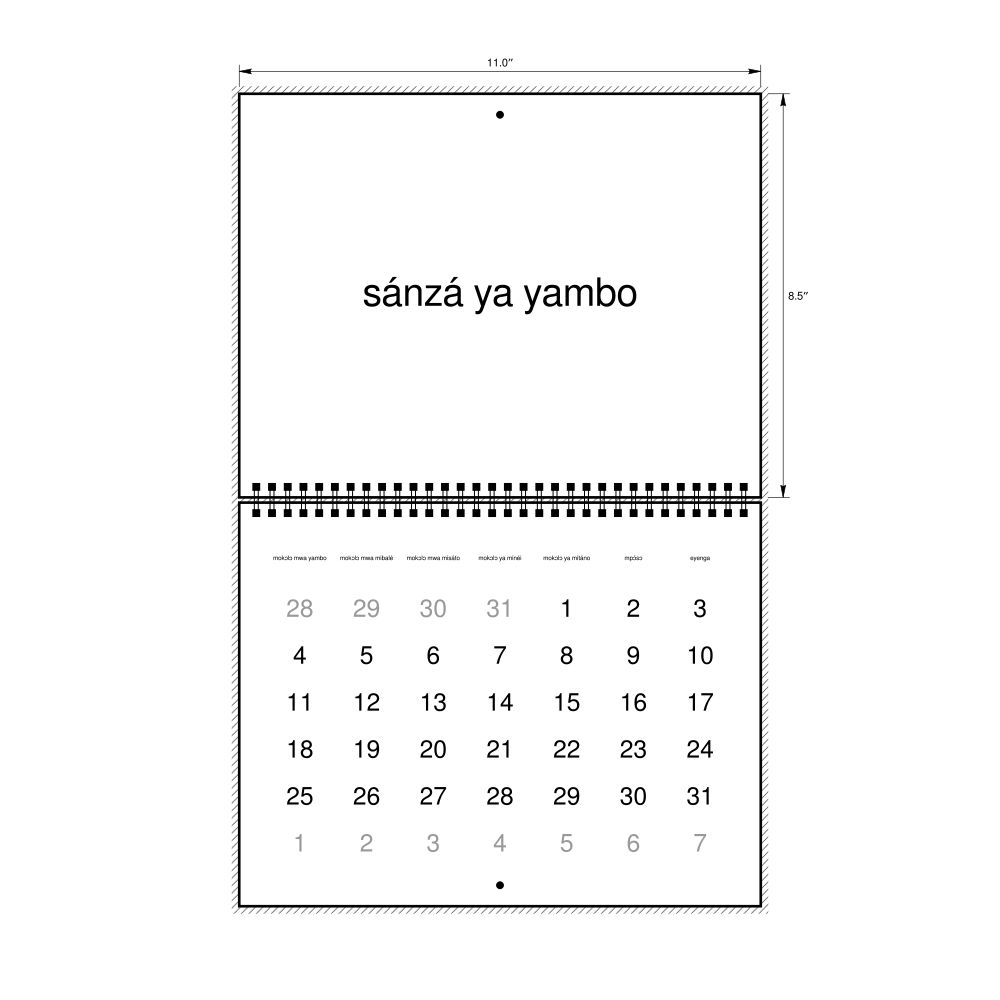 - Lingala language learners and students - For individuals currently studying Lingala, this calendar acts as a tool for passive learning and vocabulary reinforcement. It integrates essential Lingala vocabulary into a daily visual environment and promotes retention through passive immersion and spaced repetition. Place it above a desk or study area to support immersion techniques.