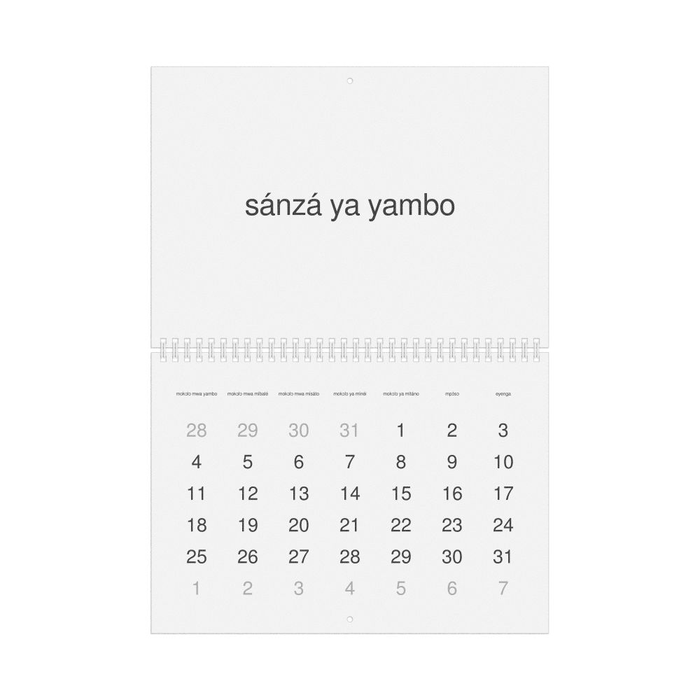 - Lingala heritage speakers and cultural connectors - For individuals seeking to maintain a connection to their history, ancestral roots, or the culture associated with the Lingala language, the calendar serves as a daily cultural marker. Use it in your home, office, library, or museum as a link to linguistic and cultural identity that integrates Lingala into your everyday life. Familiar language script and naming conventions may also provide a sense of home in a foreign environment.