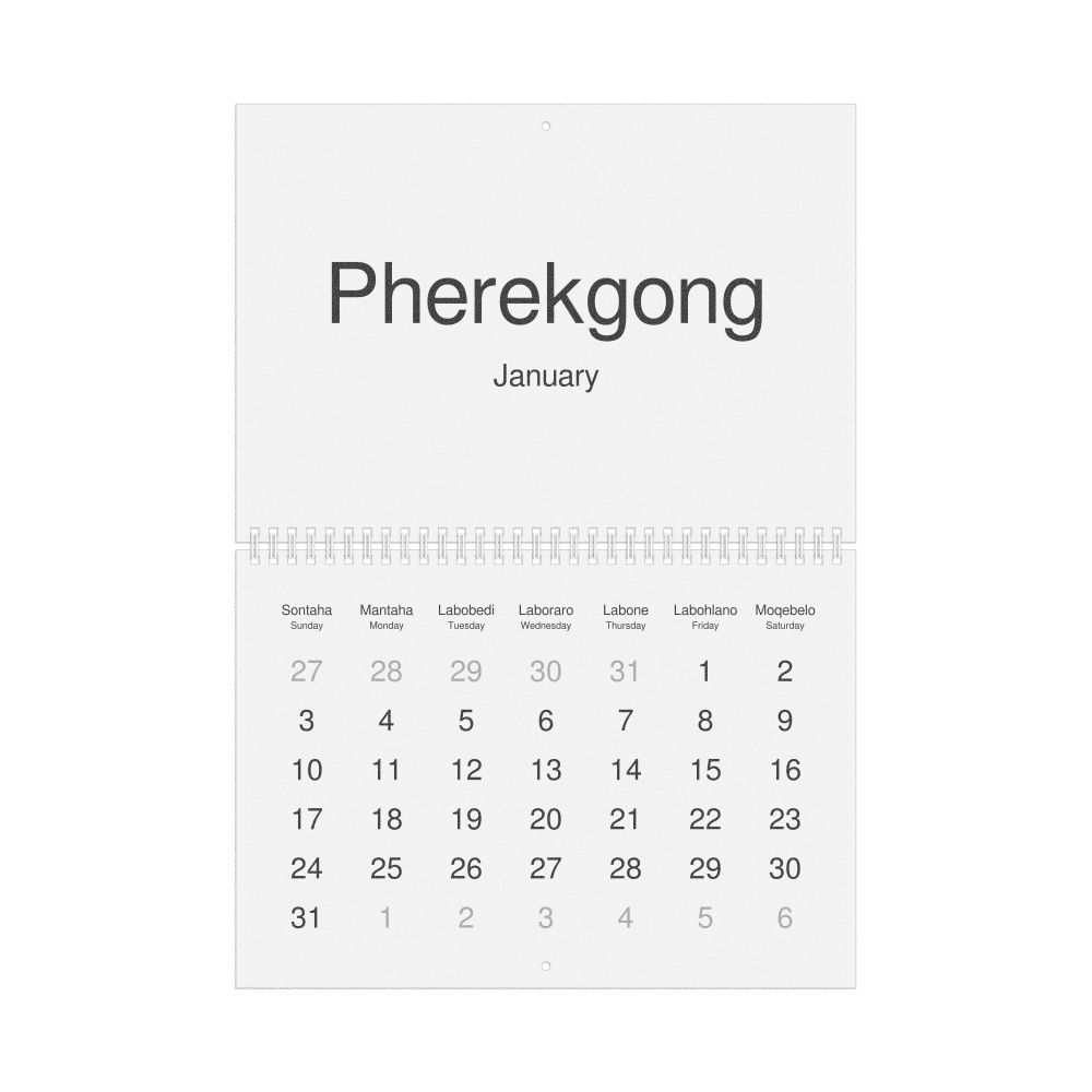 2027 Wall Calendar, Sotho-Labeled, Sunday-Start Layout, Wire-Bound, 11.7 x 8.3 in (29.7 x 21.0 cm)