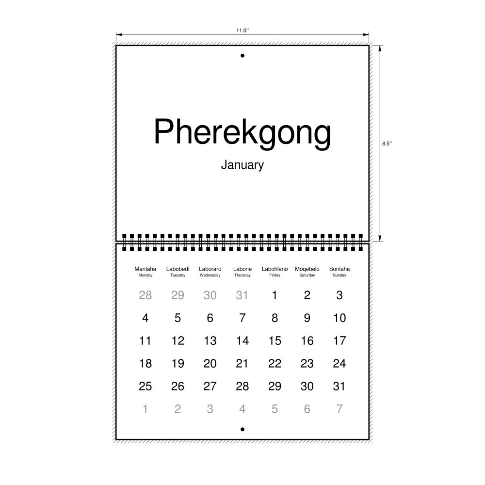 2026 Wall Calendar, Sotho/English-Labeled, Monday-Start Layout, Wire-Bound, 11 x 8.5 in (27.9 x 21.6 cm)