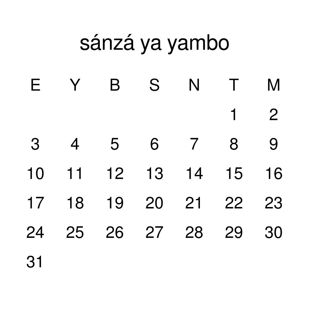 • Lingala language learners and students - For individuals currently studying Lingala, this calendar acts as a tool for passive learning and vocabulary reinforcement. It integrates essential Lingala vocabulary into a daily visual environment and promotes retention through passive immersion and spaced repetition. Place it above a desk or study area to support immersion techniques.