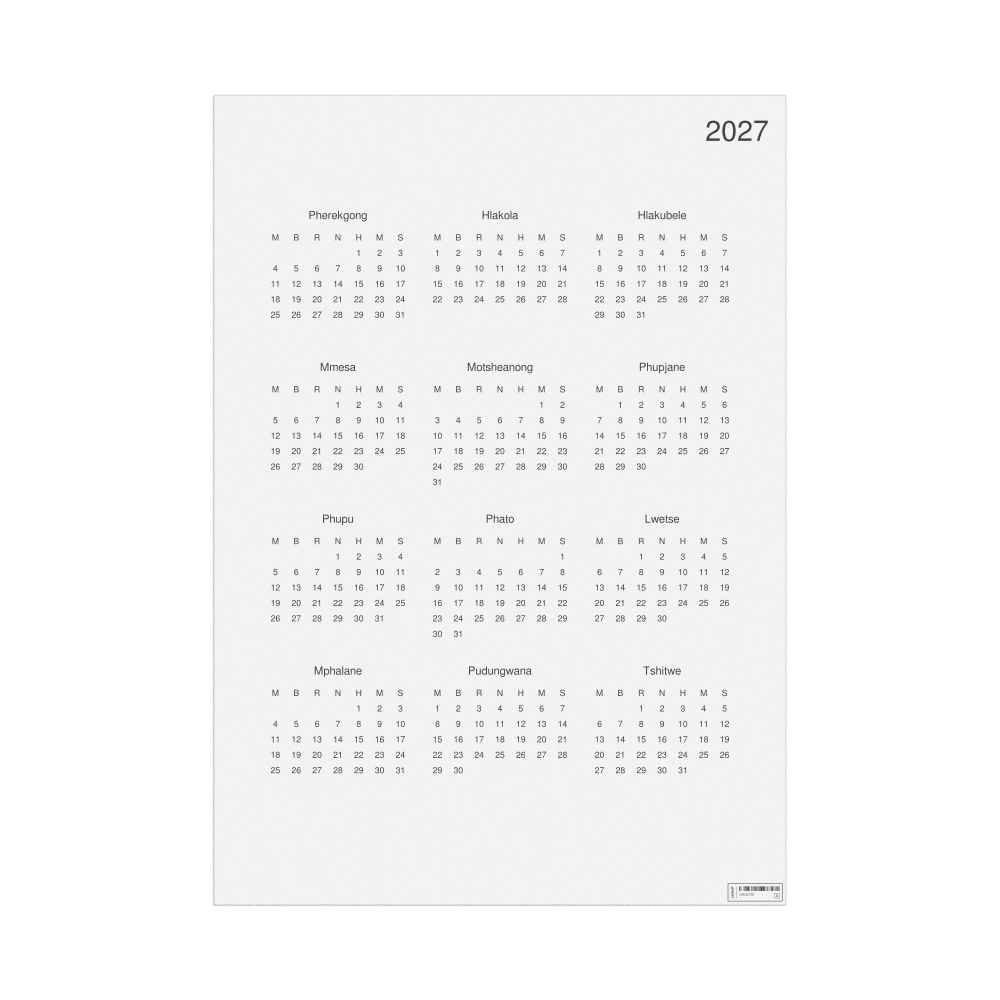 Leskoff 2027 Wall Calendar, Sotho-Labeled, Monday-Start Layout, Poster / Wall Print, 23.4 x 33.1 in (59.4 x 84.1 cm), image 1 of 1