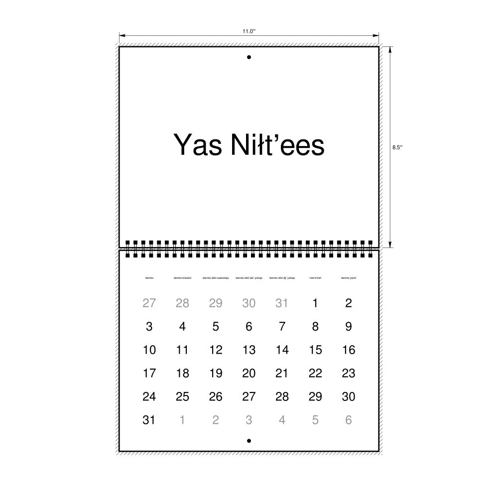 • Navajo language learners and students - For individuals currently studying Navajo, this calendar acts as a tool for passive learning and vocabulary reinforcement. It integrates essential Navajo vocabulary into a daily visual environment and promotes retention through passive immersion and spaced repetition. Place it above a desk or study area to support immersion techniques.