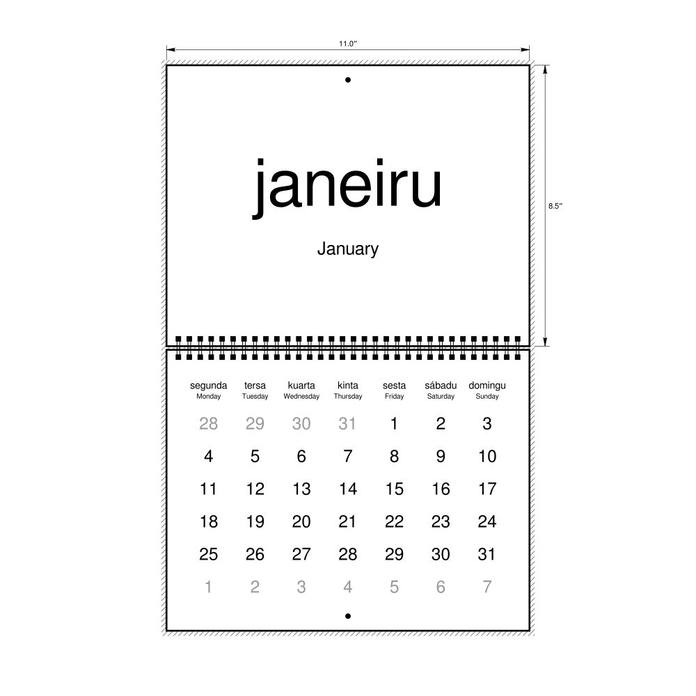 2027 Wall CalendarTetum/English-Labeled, Monday-Start Layout, Wire-Bound, 11 x 8.5 in (27.9 x 21.6 cm)
