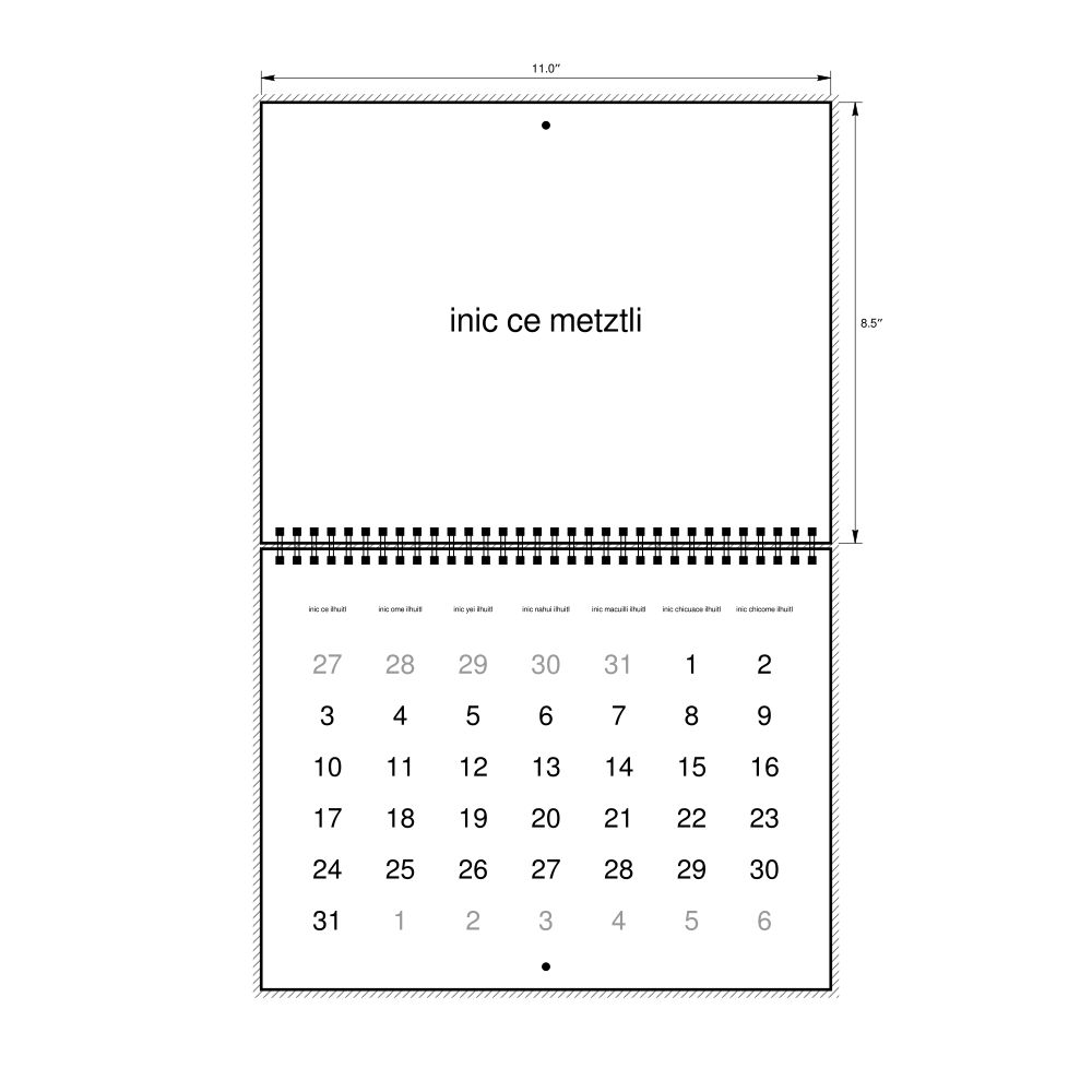 2027 Wall Calendar, Nahuatl-Labeled, Sunday-Start Layout, Wire-Bound, 11 x 8.5 in (27.9 x 21.6 cm)