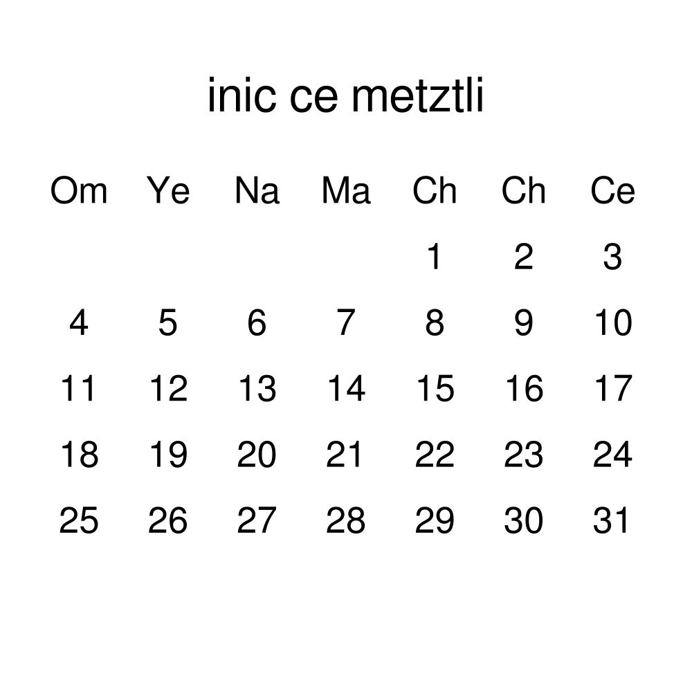 - Nahuatl speakers and enthusiasts - Choose this calendar if you are looking for a simple, localized calendar in the Nahuatl language. Use it in your home, office, or classroom as a regular calendar.