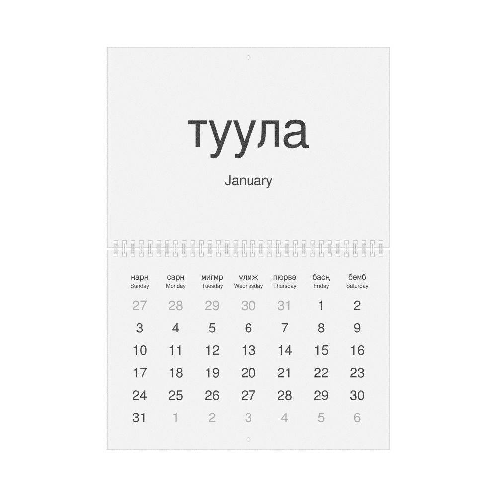 2027 Wall Calendar, Kalmyk/English-Labeled, Monday-Start Layout, Wire-Bound, 11.7 x 8.3 in (29.7 x 21.0 cm)