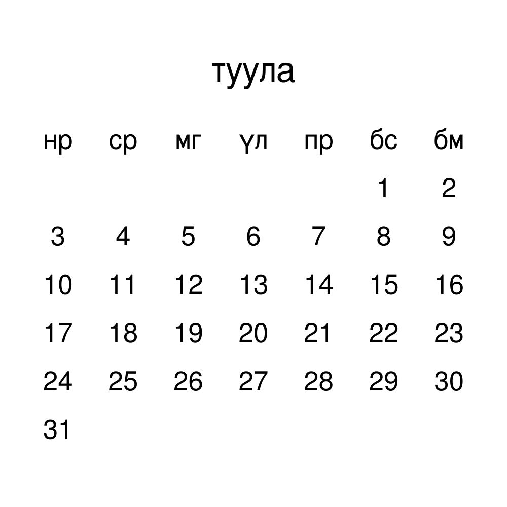 - Kalmyk heritage speakers and cultural connectors - For individuals seeking to maintain a connection to their history, ancestral roots, or the culture associated with the Kalmyk language, the calendar serves as a daily cultural marker. Use it in your home, office, library, or museum as a link to linguistic and cultural identity that integrates Kalmyk into your everyday life. Familiar language script and naming conventions may also provide a sense of home in a foreign environment.