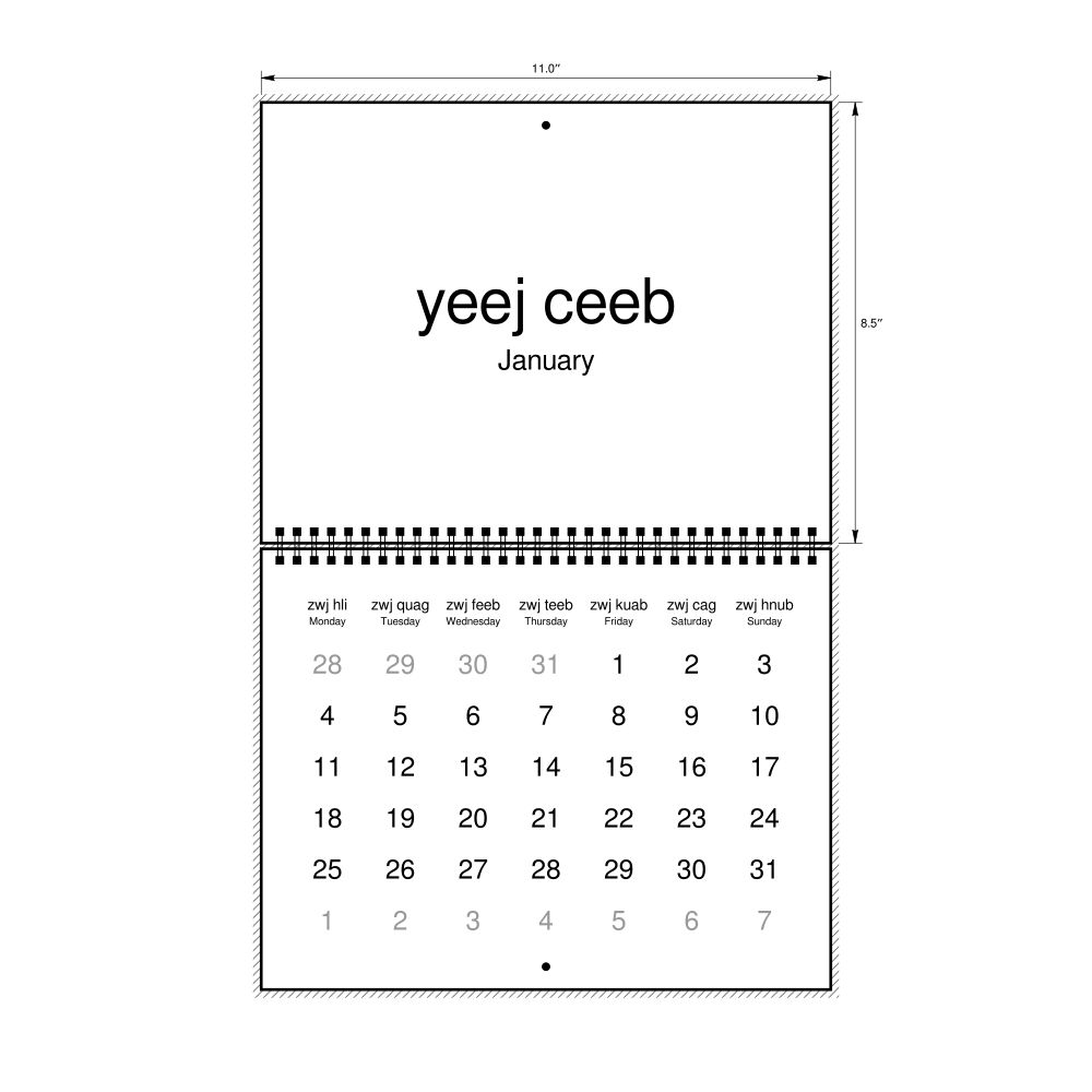 2027 Wall CalendarHmong/English-Labeled, Monday-Start Layout, Wire-Bound, 11 x 8.5 in (27.9 x 21.6 cm)