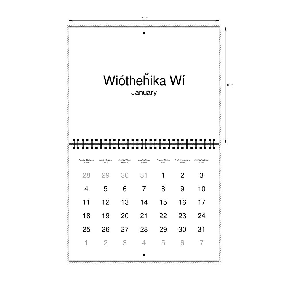 2027 Wall CalendarLakota/English-Labeled, Monday-Start Layout, Wire-Bound, 11 x 8.5 in (27.9 x 21.6 cm)