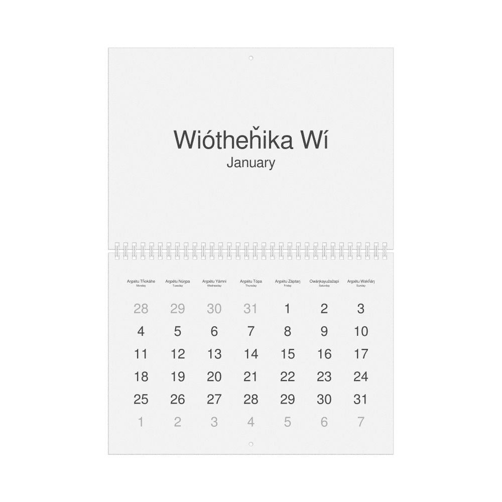 2027 Wall Calendar, Lakota/English-Labeled, Sunday-Start Layout, Wire-Bound, 11.7 x 8.3 in (29.7 x 21.0 cm)