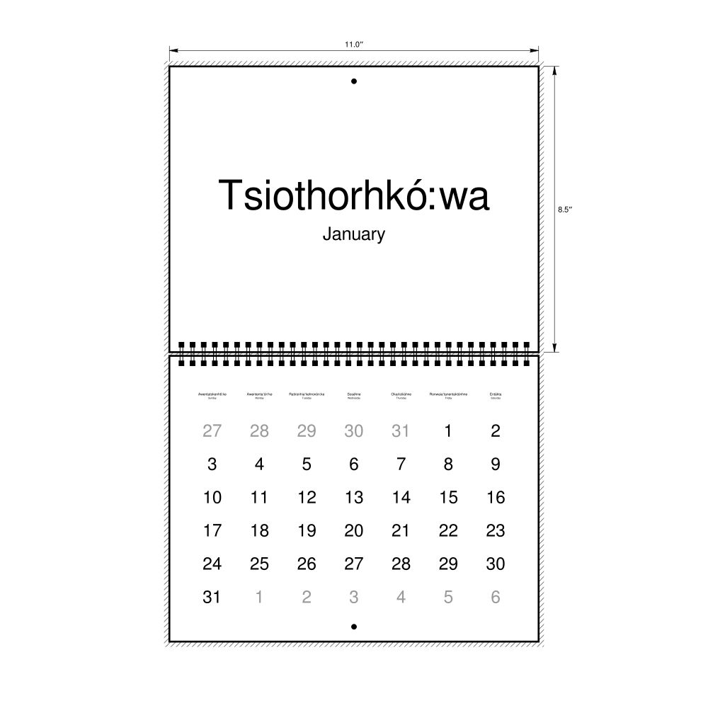 2027 Wall CalendarMohawk/English-Labeled, Sunday-Start Layout, Wire-Bound, 11 x 8.5 in (27.9 x 21.6 cm)