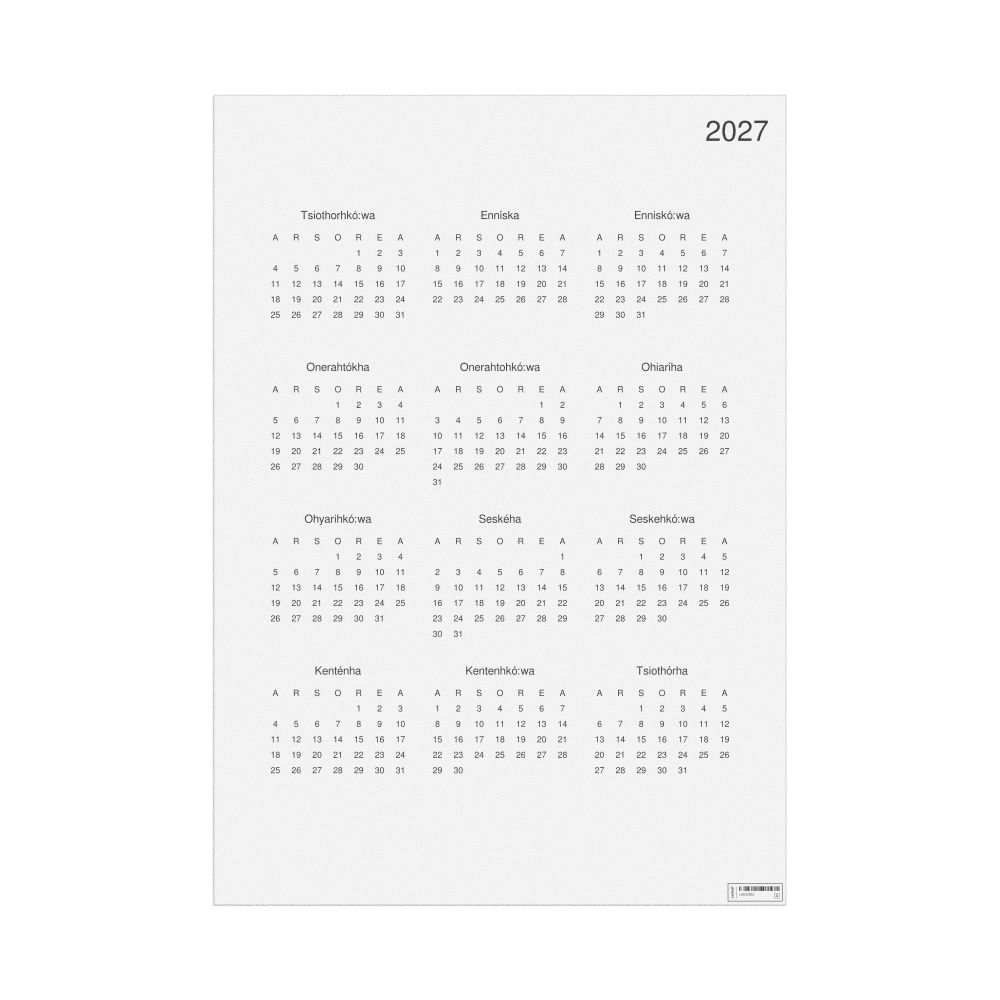 A Mohawk-language wall calendar (2027, Sunday-start format).