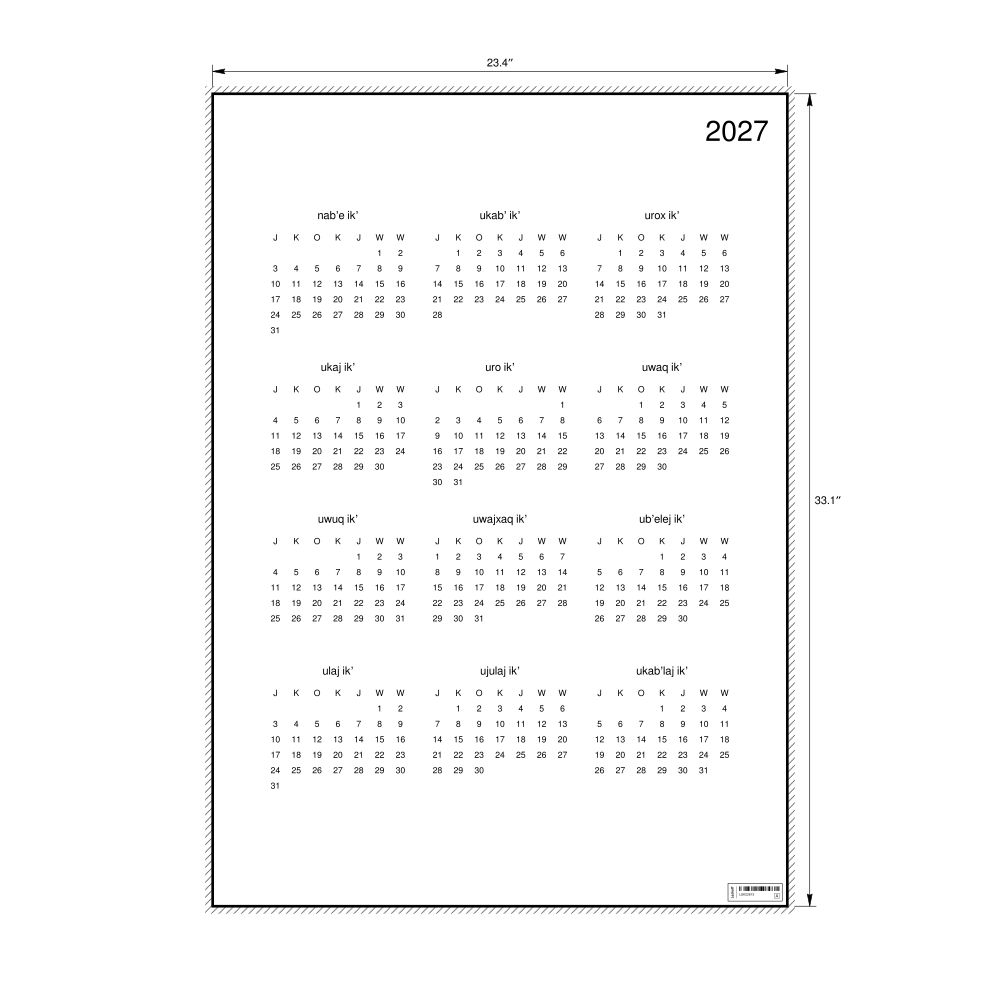 2027 Wall Calendar, Kʼicheʼ-Labeled, Sunday-Start Layout, Poster / Wall Print, 23.4 x 33.1 in (59.4 x 84.1 cm)