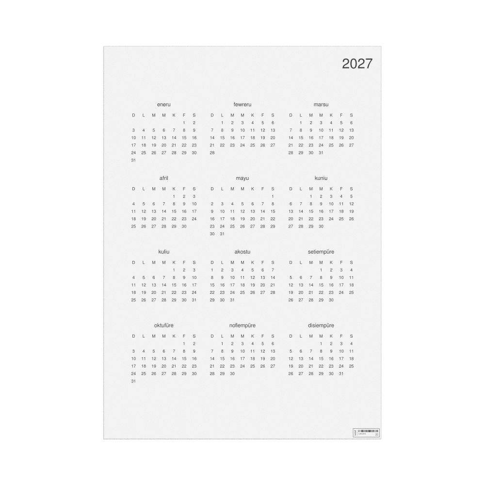 • Linguistics enthusiasts and polyglots - For "language geeks" interested in comparative linguistics or the mechanics of different languages and who value the aesthetic differences in scripts, orthography, and typography of different languages, the Mapuche calendar serves as an object of intellectual interest. You can collect calendars for various languages to compare their linguistic roots (e.g., comparing Romance languages vs. Slavic languages). Leskoff's calendars are characterized by specific typographic choices that highlight the orthography and script unique to the target language. Think correct usage of diacritics, characters, and directional writing (left-to-right vs. right-to-left). The minimalist design focuses on legibility and aesthetic appeal of the script itself.