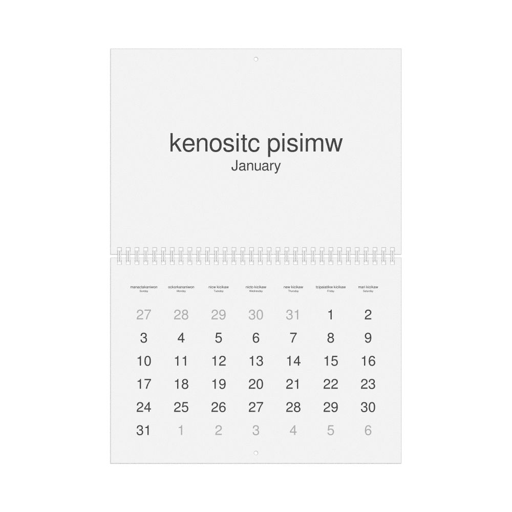 2026 Wall Calendar, Atikamekw/English-Labeled, Monday-Start Layout, Wire-Bound, 11.7 x 8.3 in (29.7 x 21.0 cm)