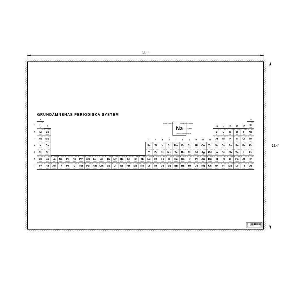 Periodic Table Chart33.1 x 23.4 in (84.1 x 59.4 cm, Poster / Wall Chart), 32-Column Layout, Swedish-Labeled