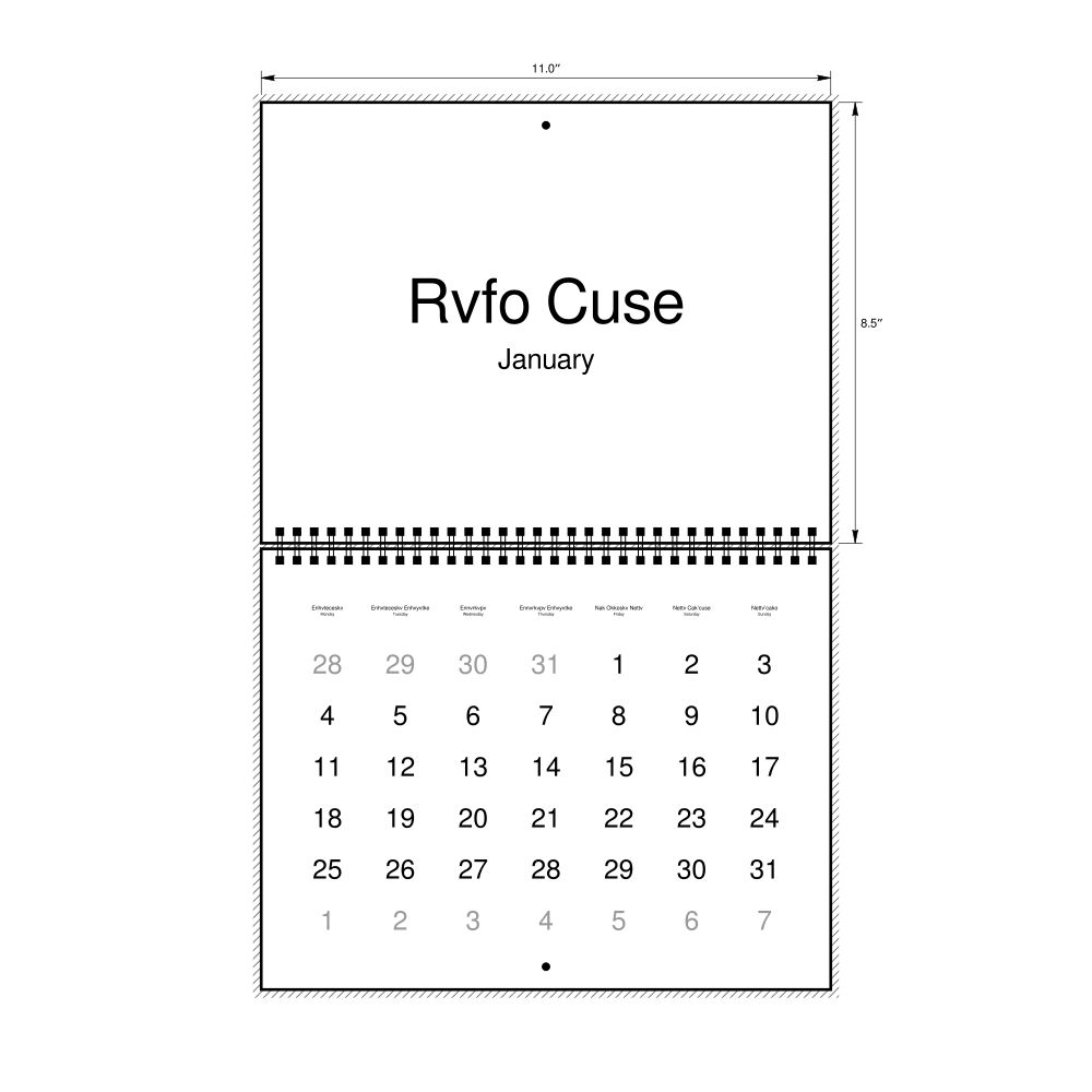 2027 Wall Calendar, Muscogee/English-Labeled, Sunday-Start Layout, Wire-Bound, 11 x 8.5 in (27.9 x 21.6 cm)