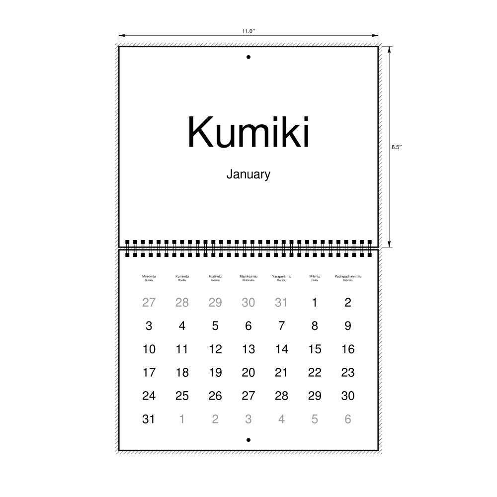2027 Wall CalendarKaurna/English-Labeled, Sunday-Start Layout, Wire-Bound, 11 x 8.5 in (27.9 x 21.6 cm)