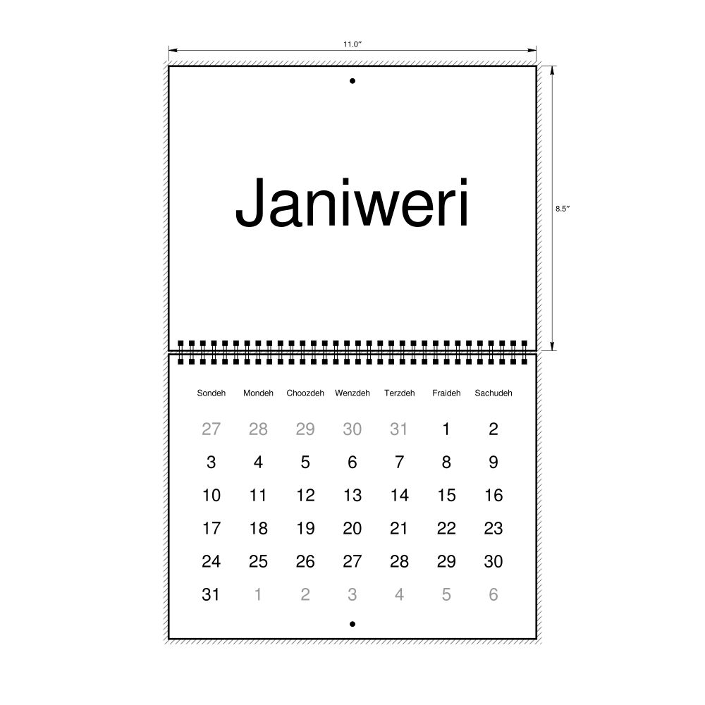 - Linguistics enthusiasts and polyglots - For "language geeks" interested in comparative linguistics or the mechanics of different languages and who value the aesthetic differences in scripts, orthography, and typography of different languages, the Belizean Creole calendar serves as an object of intellectual interest. You can collect calendars for various languages to compare their linguistic roots (e.g., comparing Romance languages vs. Slavic languages). Leskoff's calendars are characterized by specific typographic choices that highlight the orthography and script unique to the target language. Think correct usage of diacritics, characters, and directional writing (left-to-right vs. right-to-left). The minimalist design focuses on legibility and aesthetic appeal of the script itself.
