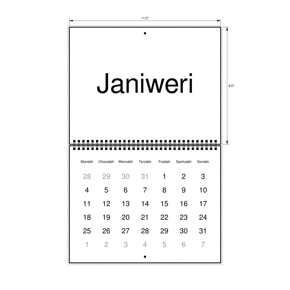 - Linguistics enthusiasts and polyglots - For "language geeks" interested in comparative linguistics or the mechanics of different languages and who value the aesthetic differences in scripts, orthography, and typography of different languages, the Belizean Creole calendar serves as an object of intellectual interest. You can collect calendars for various languages to compare their linguistic roots (e.g., comparing Romance languages vs. Slavic languages). Leskoff's calendars are characterized by specific typographic choices that highlight the orthography and script unique to the target language. Think correct usage of diacritics, characters, and directional writing (left-to-right vs. right-to-left). The minimalist design focuses on legibility and aesthetic appeal of the script itself.