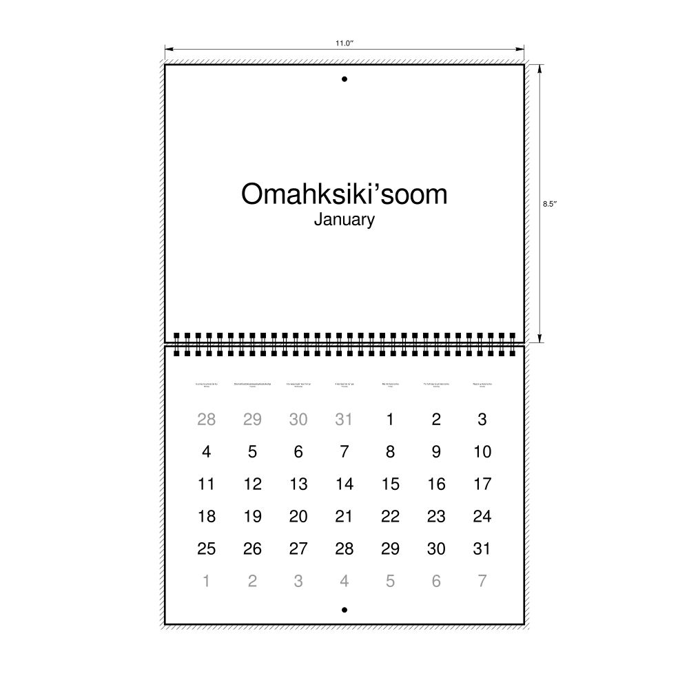 2027 Wall CalendarBlackfoot/English-Labeled, Monday-Start Layout, Wire-Bound, 11 x 8.5 in (27.9 x 21.6 cm)