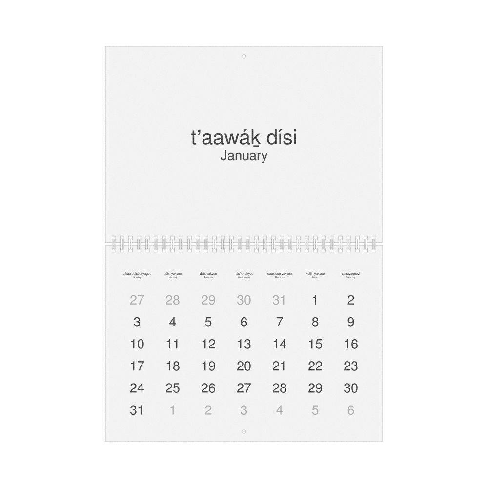 2026 Wall Calendar, Tlingit/English-Labeled, Sunday-Start Layout, Wire-Bound, 11.7 x 8.3 in (29.7 x 21.0 cm)