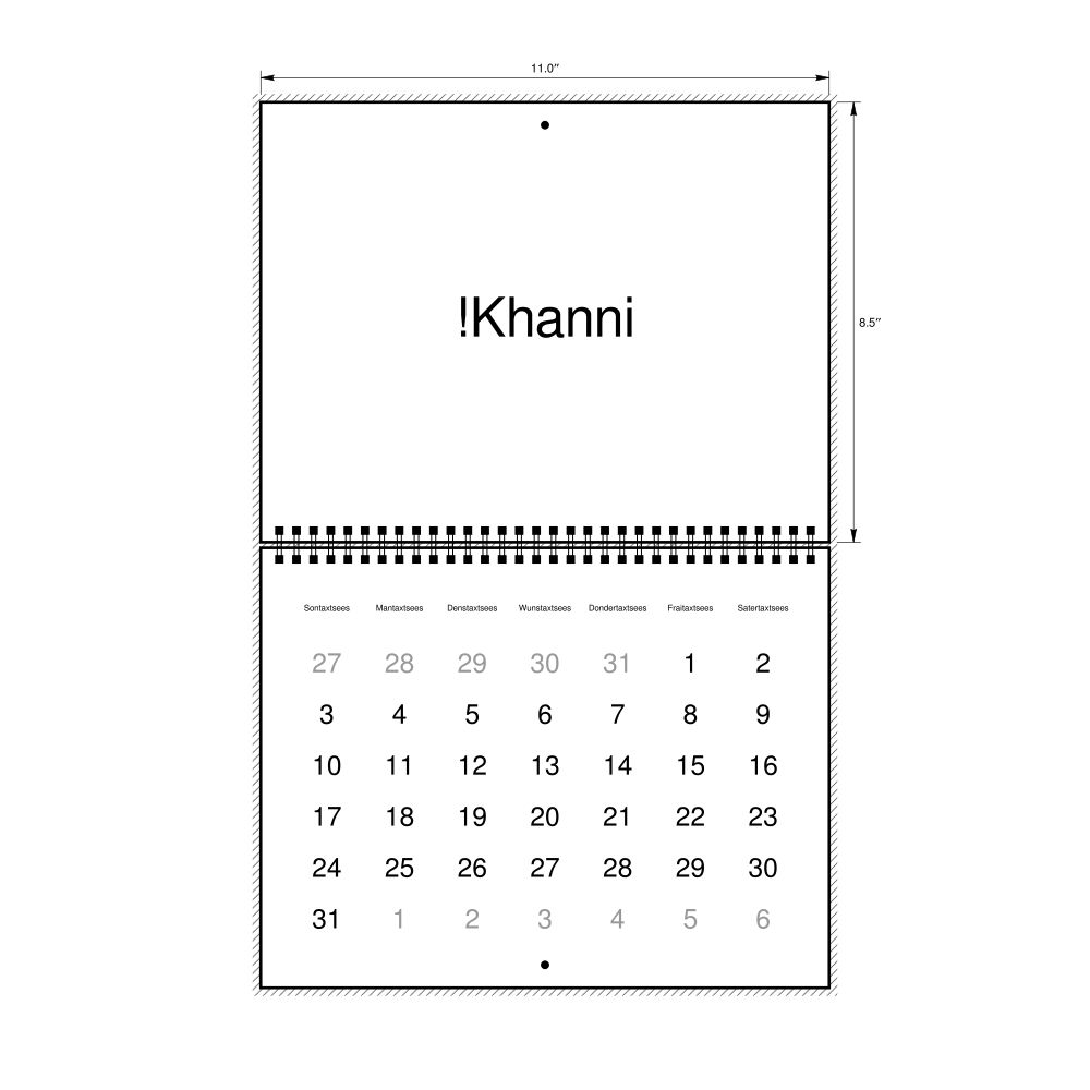2027 Wall Calendar, Khoekhoe-Labeled, Sunday-Start Layout, Wire-Bound, 11 x 8.5 in (27.9 x 21.6 cm)